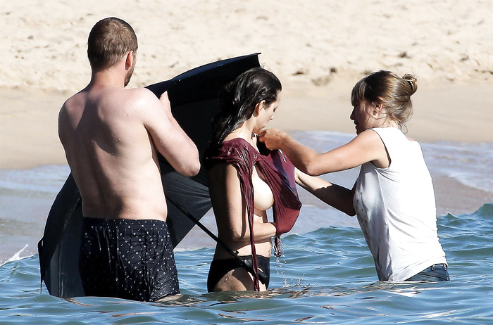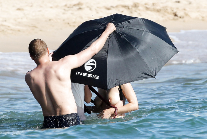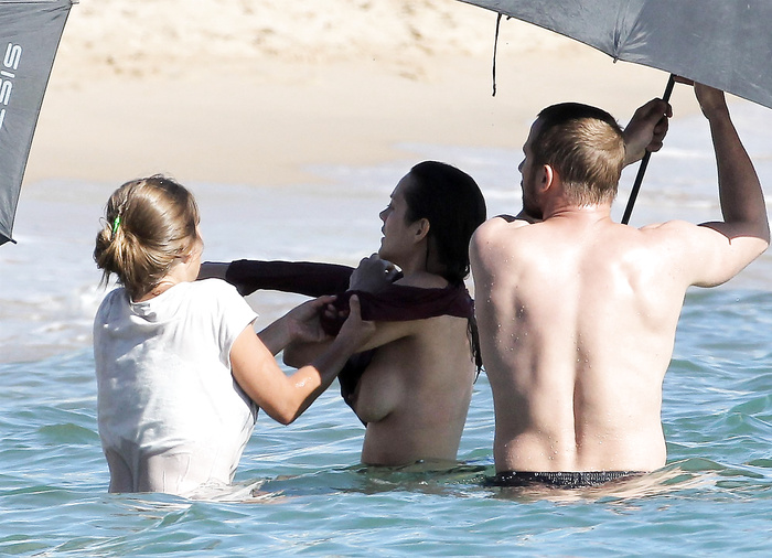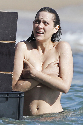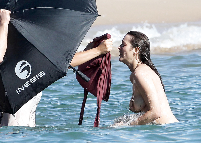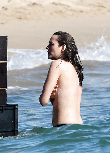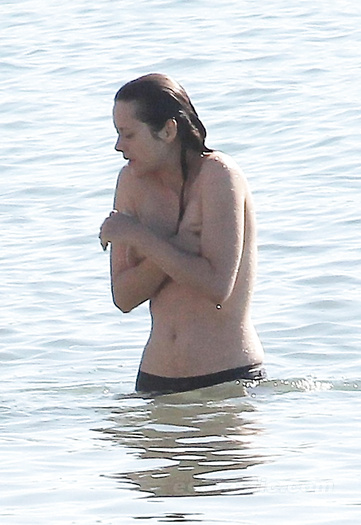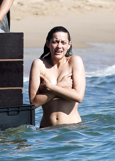 Marion Cotillard (36 years) topless on the set of 'Rust and Bones' (October 2011).