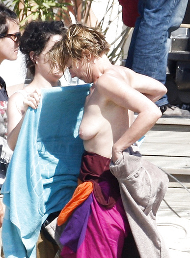 Emma Thompson (53 years) caught nude on the set 'Love Punch' (June 2012).