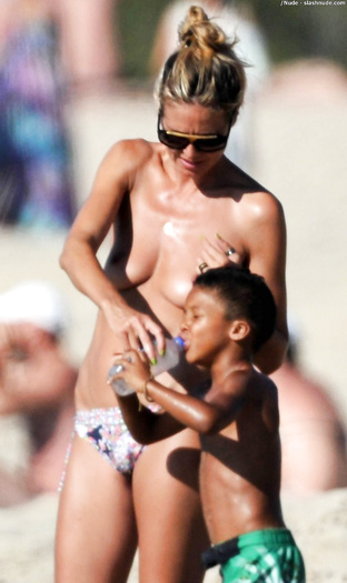 Heidi Klum (38 years) sunbathing topless in Corsica (August 2011).