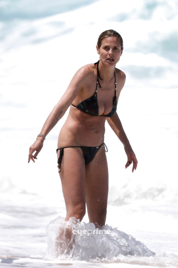 Model Heidi Klum (40 years) nipple slip and butt crack on the beach in Honolulu, Hawaii (March 2013).