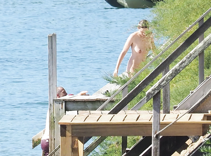 sunbathing topless