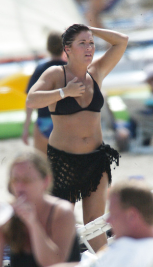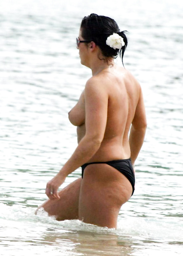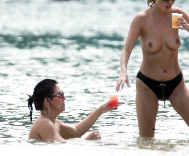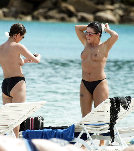 English actress Jessie Wallace (36 years) was caught topless on the beach in Carribean (12 May 2007).