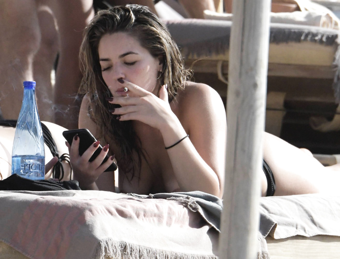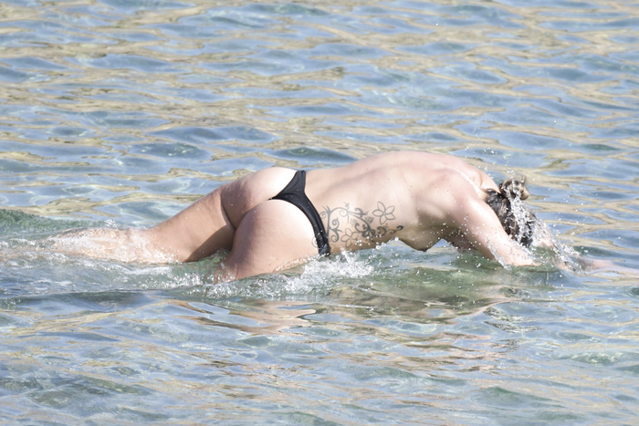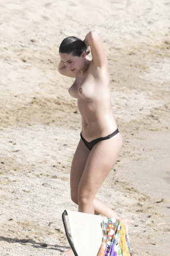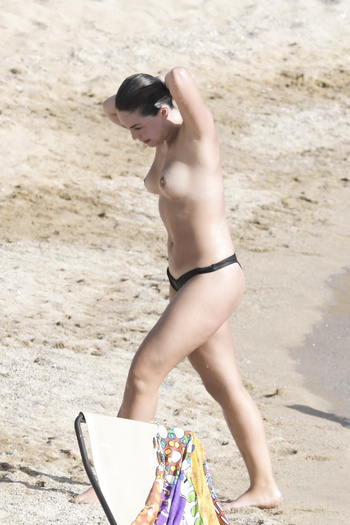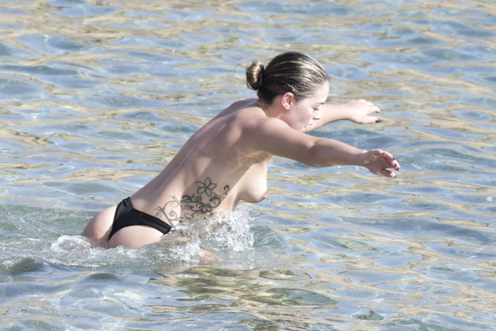 Olympia Valance (24 years) caught topless at the beach in Greece on ther holyday (20 september 2017).