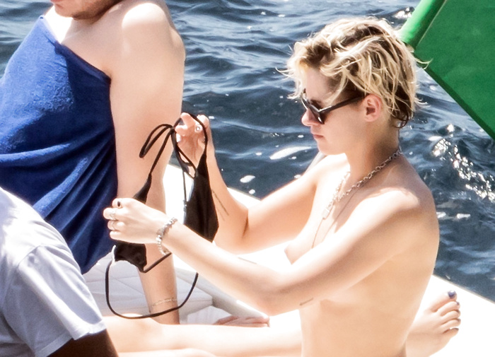 Kristen Stewart topless on yacht at Amalfi Coas (7/19)