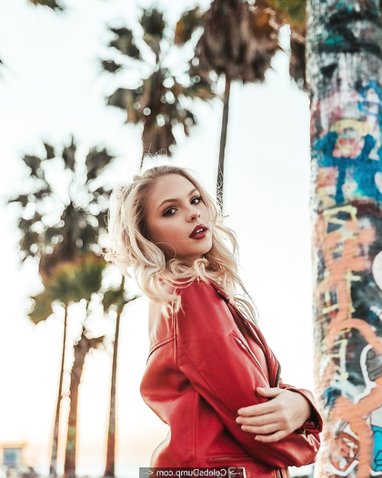 Jordyn Jones in red for Sam Cahill photoshoot, February 2019