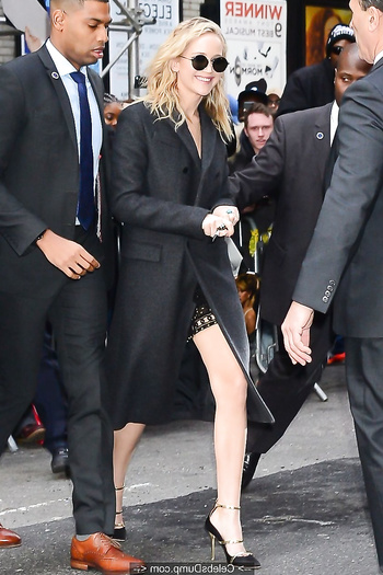 Jennifer Lawrence arriving at The Late Show with Stephen Colbert in NYC -