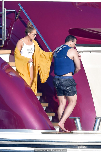 Watch Jennifer Lopez in white swimsuit on a yacht in St. Tropez - September 03, 2019 in our scandal and leaked nude pics collection
