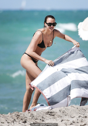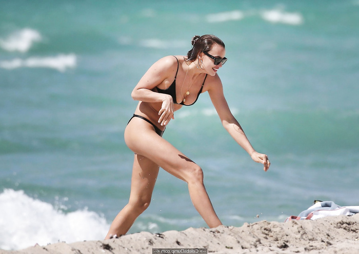 Watch Irina Shayk nipple slip in black bikini at the beach in Miami - March 07, 2019 in our scandal and leaked nude pics collection
