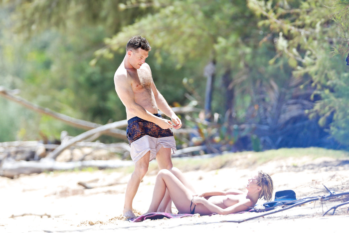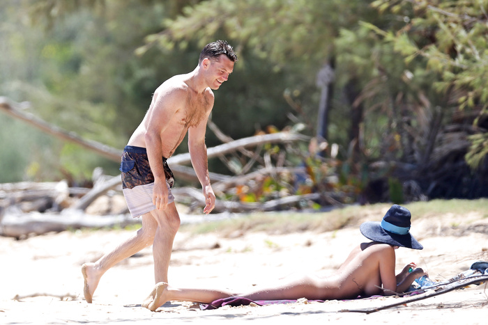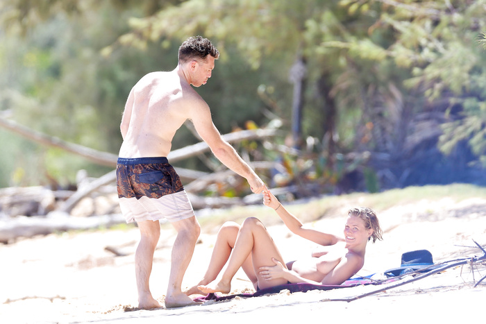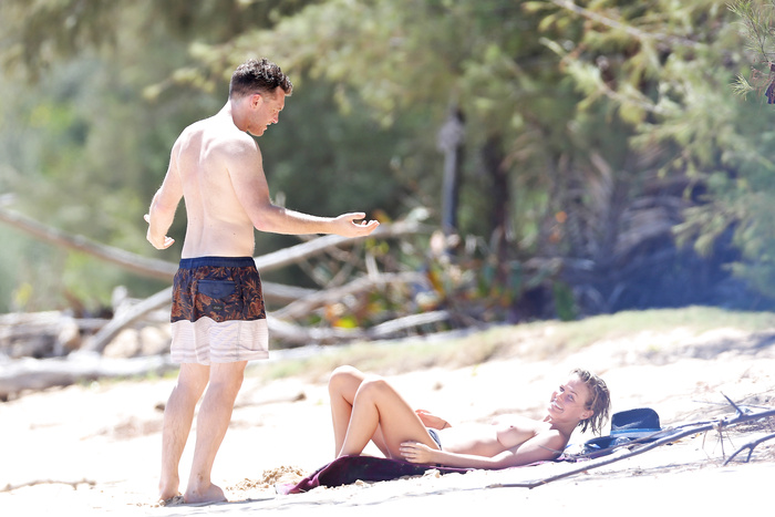 Australian model Lara Bingle (27 years) topless and sunbathing nude in Hawaii with Sam Worthington (August 2014).