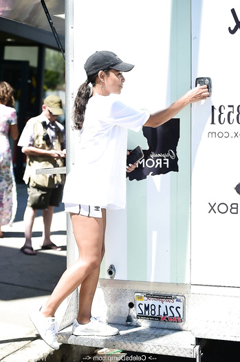 Christina Milian leggy at the Beignet Box truck in Studio City - August 18, 2019
