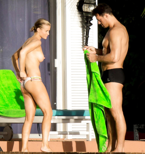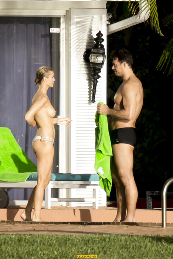 Joanna Krupa (she was 34 years old) swimming topless in Miami (August 2013).