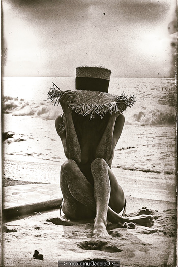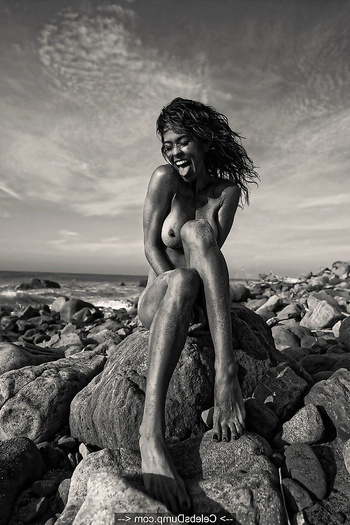 Brooke Burke topless on a beach black--white photoshoot by Brian Bowen Smith -