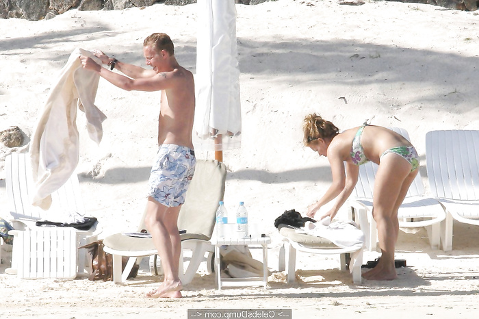 Watch Billie Piper relaxing topless at the beach - April 22, 2008 in our scandal and leaked nude pics collection