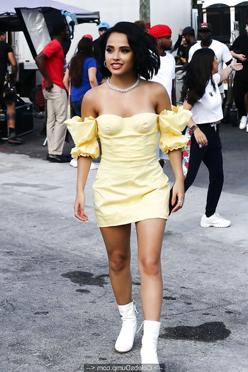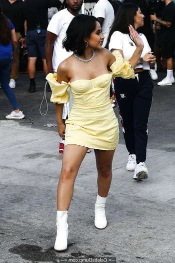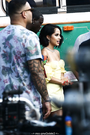 Watch Becky G in yellow dress on the set of a music video in Miami - July 30, 2019 in our scandal and leaked nude pics collection