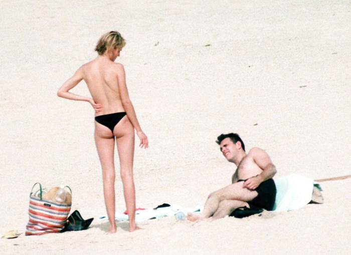 Cameron Diaz (she was 26 years old) swimming and sunbathing topless in St. Bart’s (July 1998).