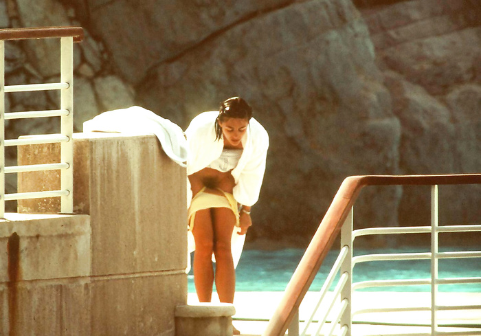 Elizabeth Hurley - bottomless in Cannes (6/1995)