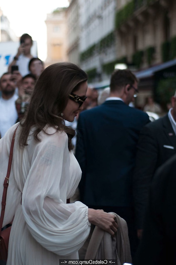 Angelina Jolie hard nipples in white dress in Paris - July 08, 2019