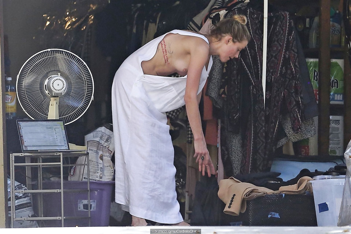 Amber Heard has a tit slip while cleaning out her garage - Juny 30, 2018
