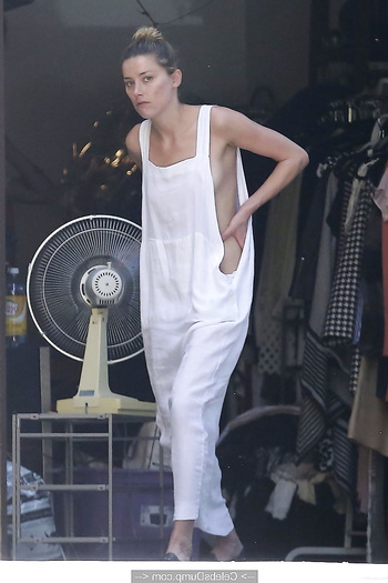 Watch Amber Heard has a tit slip while cleaning out her garage - Juny 30, 2018 in our scandal and leaked nude pics collection