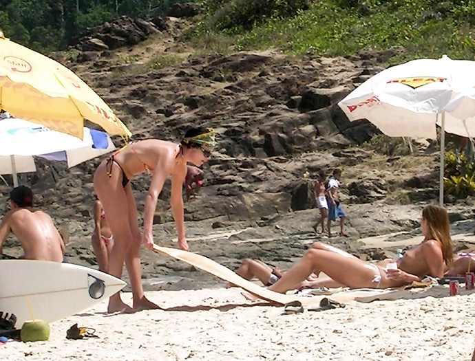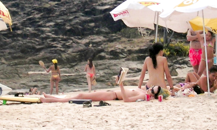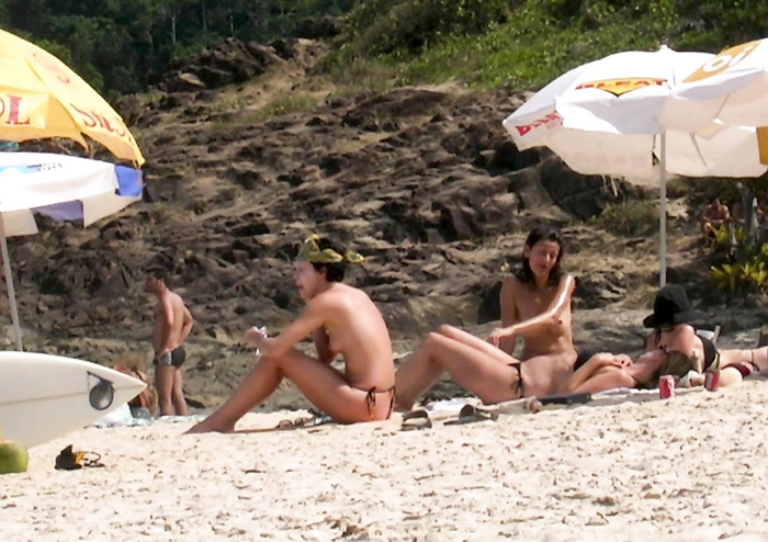 Charlize Theron (she was 30 years old) sunbathing topless in Brazil (January 2005).