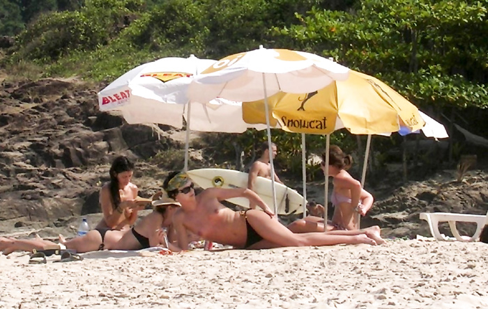 Charlize Theron - sunbathing topless in Brazil (1/2005)