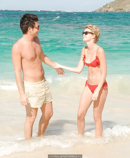 Sara Paxton cameltoe in red bikini on a beach in Netherlands Antilles
