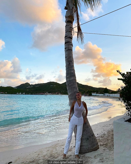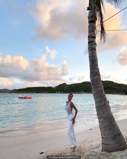 Bella Hadid braless in see through top at the beach in St. Barts - December 08,