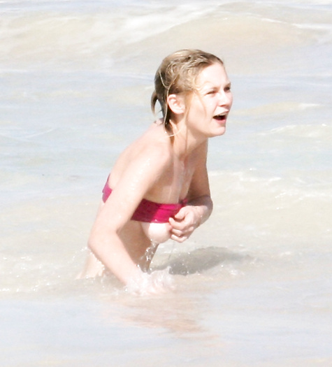 Kirsten Dunst (she was 22 years) bikini slip in St. Bart’s, The Caribbean (January 2005).