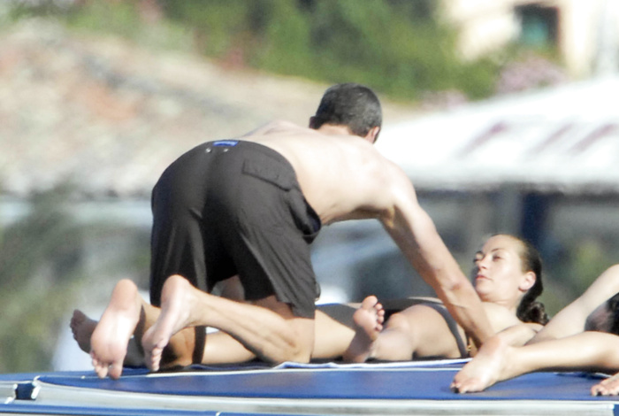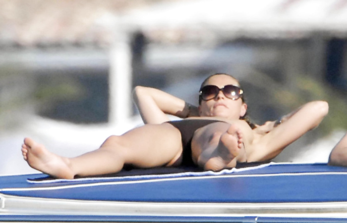 Rebecca Gayheart (she was 36 years) topless on yacht in Porto Cervo, Italy (June 2007).