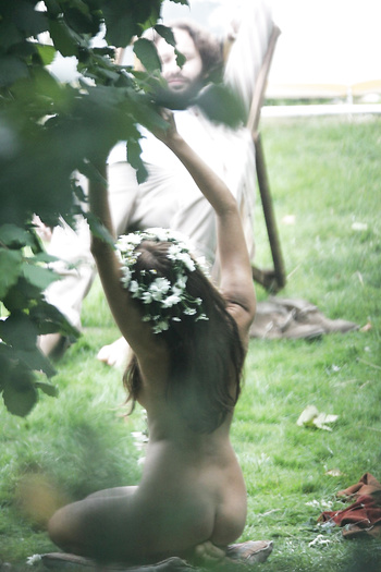 Sienna Miller (she was 26 years) nude on set (5/2007). Walking full frontal nude on a set from movie 'Hippie Hippie Shake'. Film was film neverfull frontal released. Sienna comes completely naked into the water, showing tits, ass and shaved pussy.