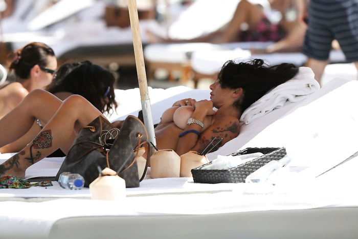 sunbathing topless