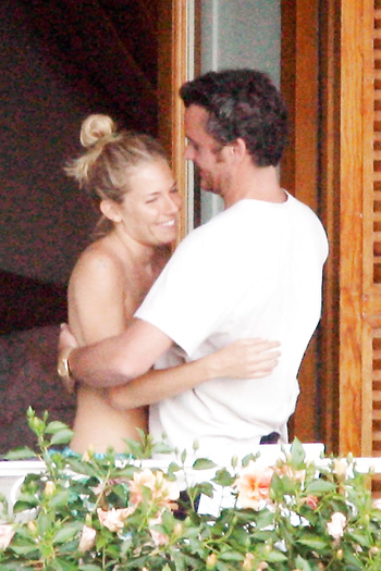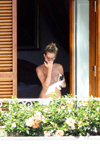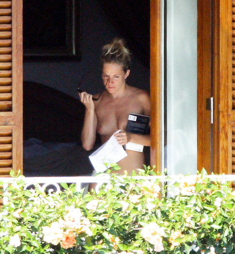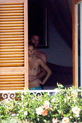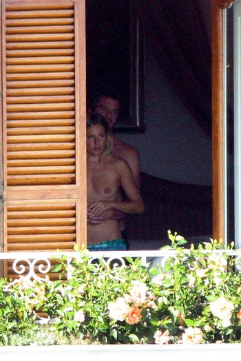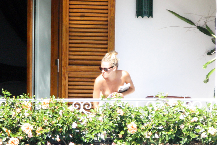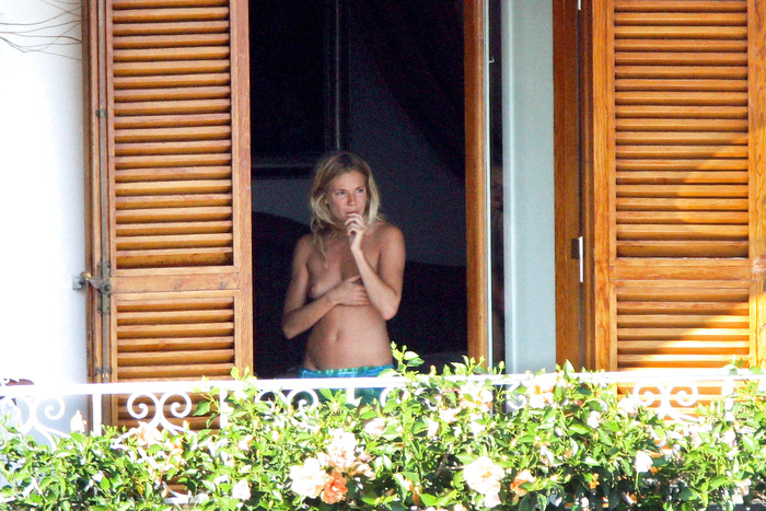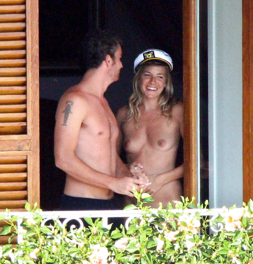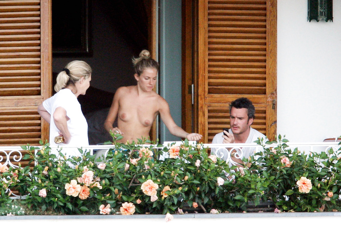 Sienna Miller (she was 27 years) caught topless on balcony with her boyfriend Balthazar Getty (July 2008).